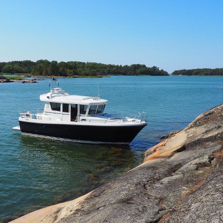 – Toisinaan toimin kotikonttorilta käsin, ja monta päivää olen kokonaan veneen kanssa saaristossa työajeluilla mutta työssäni on paljon sellaista, että on hyvä olla läsnä konttorilla sekä vierailevia asiakkaita että omaa tiimiämme ajatellen. Saman katon alla meitä työskentelee neljä välittäjää sekä kolme isännöitsijää. Hommaa riittää välillä kiireeksi asti, mutta tunnelma on leppoisa ja autamme toisiamme hyvällä fiiliksellä. Uskon positiivisen hengen heijastuvan myös suoraan seinien ulkopuolelle, sydämelliseen ja hyvään asiakastyöhön, Rabbe pohtii.