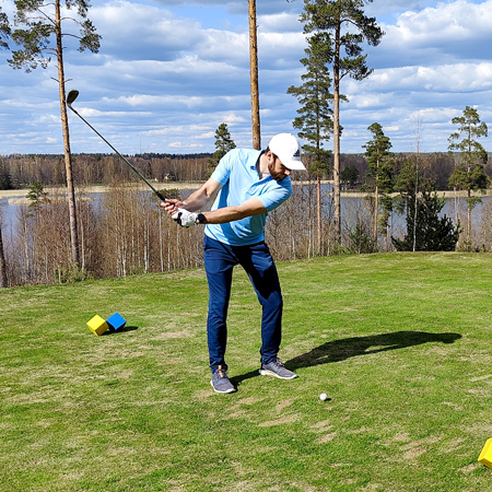– Javisst, i golf har man åtminstone ännu gott om förbättringsmån! Det är enligt mig en passligt rofylld och social sport, där man till sist och slut endast tävlar med sig själv. Även i andra klubb- och bollsporter hålls klubban i handen, och det blir även en del innebandy och fotboll. Jag trivs också på promenader och vandringar – kanske därför att jag även på vardagar har privilegiet att röra mig i vår ljuvliga skärgård, avslutar Sebastian.
