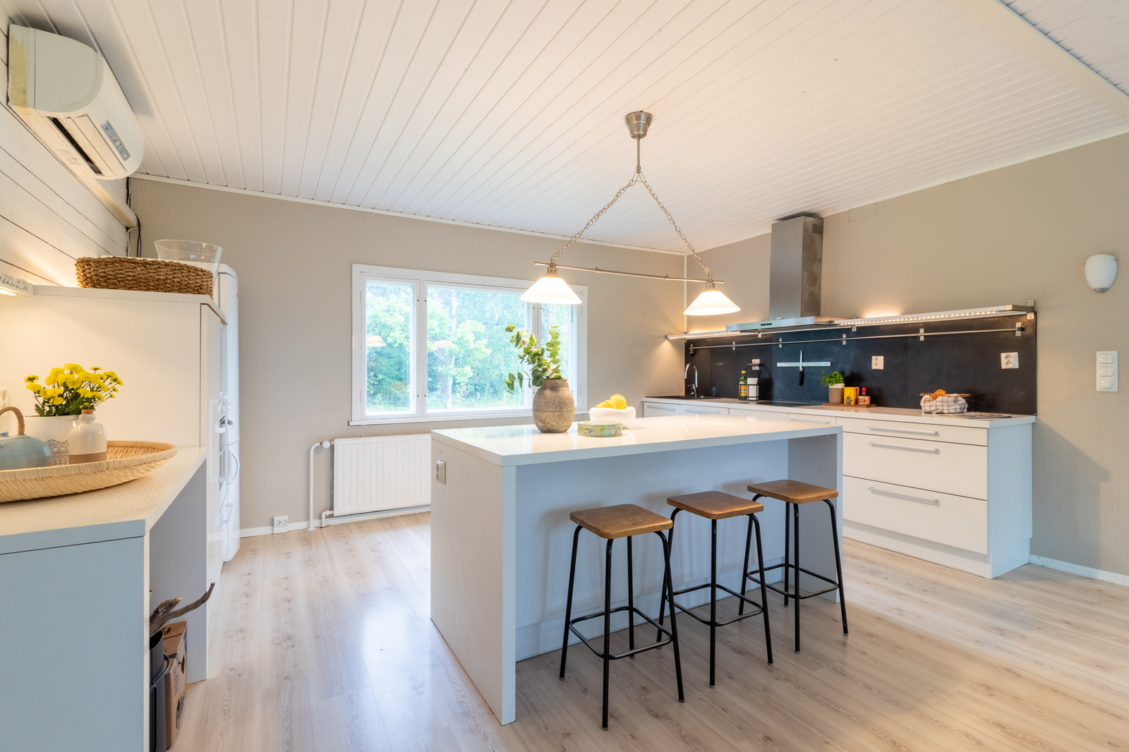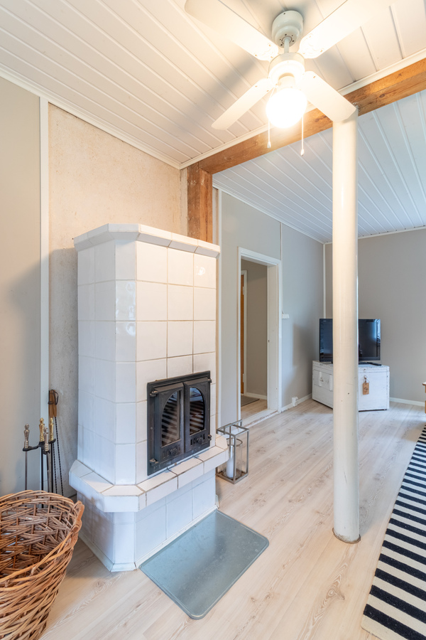 Under årens lopp har huset genomgått omfattande renoveringar: bl.a. elen har förnyats, badrum och bastu har renoverats, rör har bytts ut, köket har förnyats – och mycket mer. Uppvärmningen sker med olja i kombination med en värmelagrande eldstad och luftvärmepump. I källaren finns både förvaringsutrymmen och utrymme för ett hemvårdsrum. På gården finns också ett garage/verkstad med el och luftvärmepump.